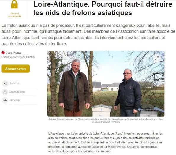 Article Ouest France 23-11-2022 - Frelon Asiatique